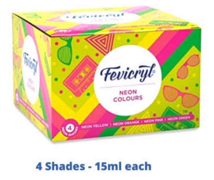 Pidilite Fevicryl Neon Acrylic Colours – 4 Shades,15ml each